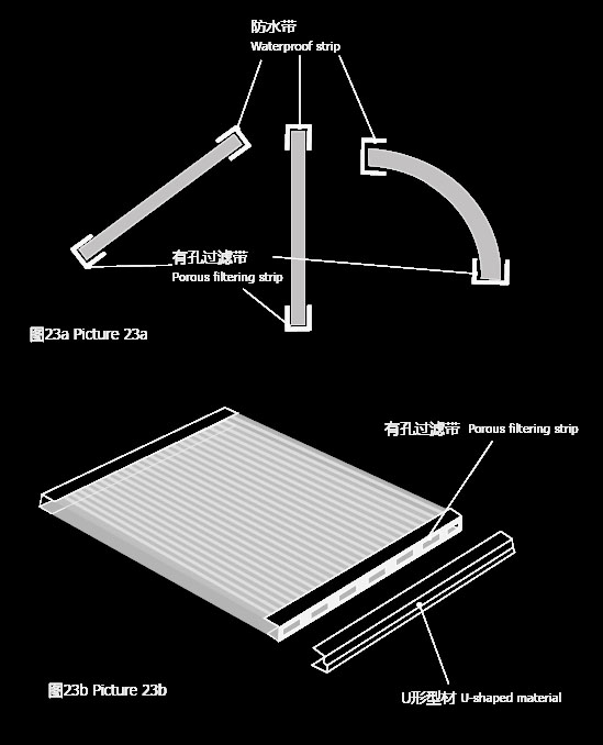 可以安裝"U"型型材包住底部有孔的過濾帶,其好處是: