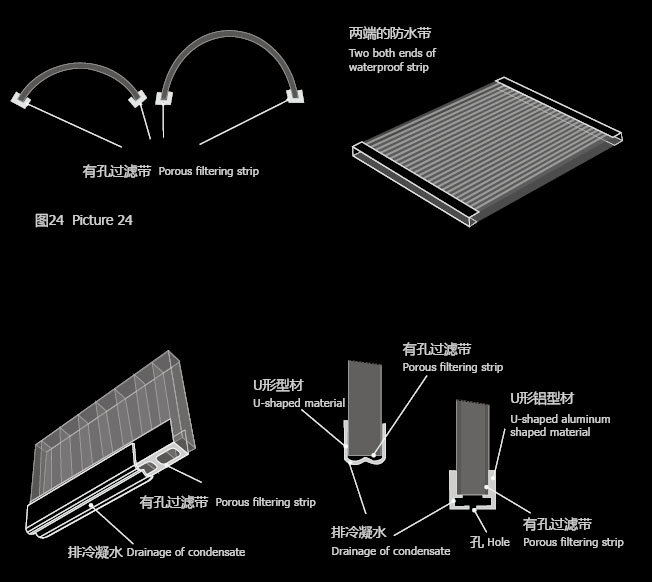 在圓弧型拱頂安裝中,兩端的槽的兩端應用有孔過濾帶封住。注意:板材的兩端要保持清潔,便于冷凝水的排出。