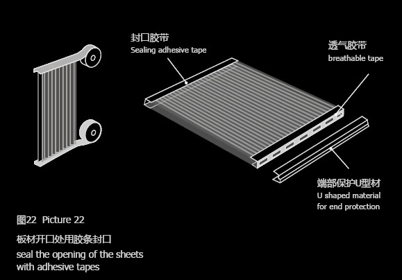 *使用鋁箔膠帶和專用透氣膠帶對板材孔格端部進行封口處理,這兩種膠帶可以從有實力的膠帶生產商處獲得。(見圖22)