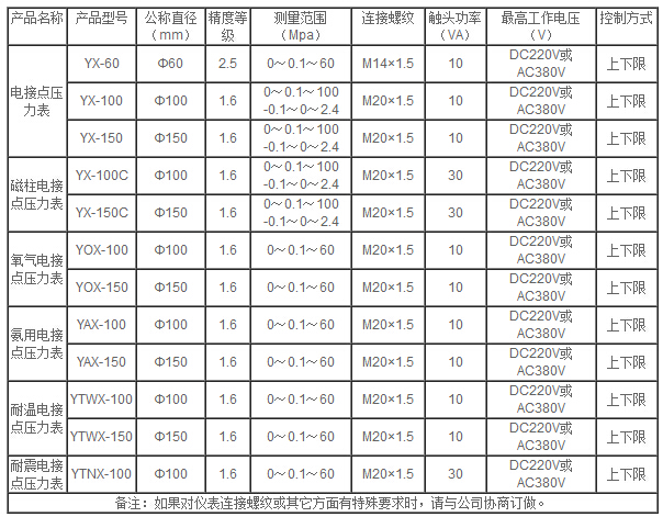 10、表盤直徑:φ60;φ100mm;φ150mm